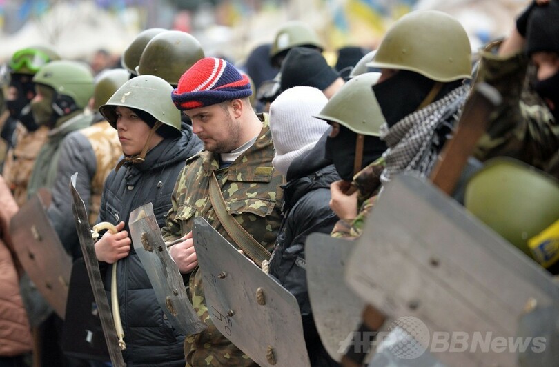 ウクライナでは、親ロシア路線をとるビクトル・ヤヌコビッチ(Viktor Yanukovych)大統領が欧州連合(EU)との連合協定への署名を見送ったことがきっかけで起きた反政権デモが、警官隊との衝突に発展。国内は3か月近くにわたる混乱に陥り、首都キエフ(Kiev)では市庁舎などが2か月間にわたって占拠されていた。