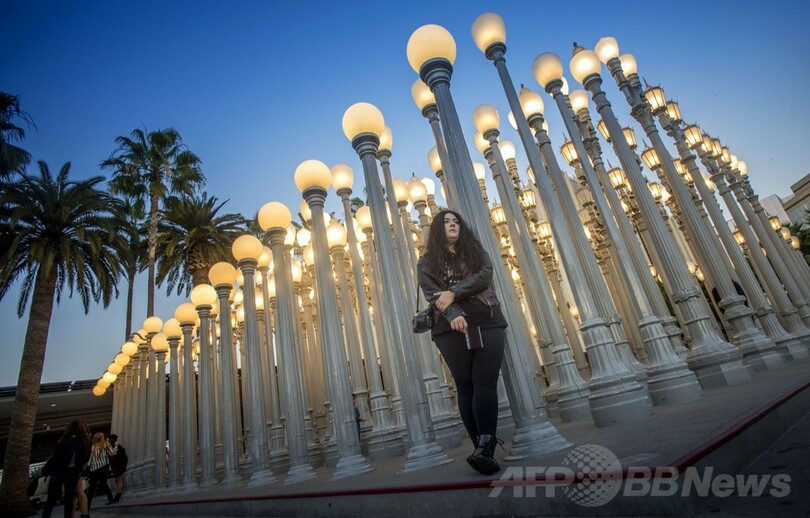 【2月18日 AFP】米カリフォルニア(California)州のロサンゼルス郡立美術館(Los Angeles County Museum of Art)前に08年に設置された現代美術家、故クリス・バーデン(Chris Burden)の作品「アーバンライト(Urban Light)」が、結婚したカップルの間で記念写真を撮影する人気スポットとなっている。