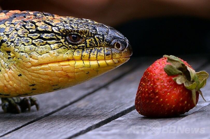 【2月18日 AFP】オーストラリア・シドニー(Sydney)にある動物園「ワイルドライフ・シドニー・ズー(Wild Life Sydney Zoo)」で18日、最近生まれたマダラアオジタトカゲの子ども7匹が母トカゲと一緒に初めて来園者に公開された。(c)AFP
