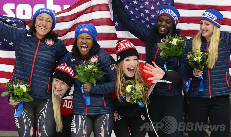 銅メダルは、3分51秒61を記録した米国のジェイミー・グルーベル(Jamie Greubel)/エイジャ・エバンス(Aja Evans)組が手にしている。 (c)AFP