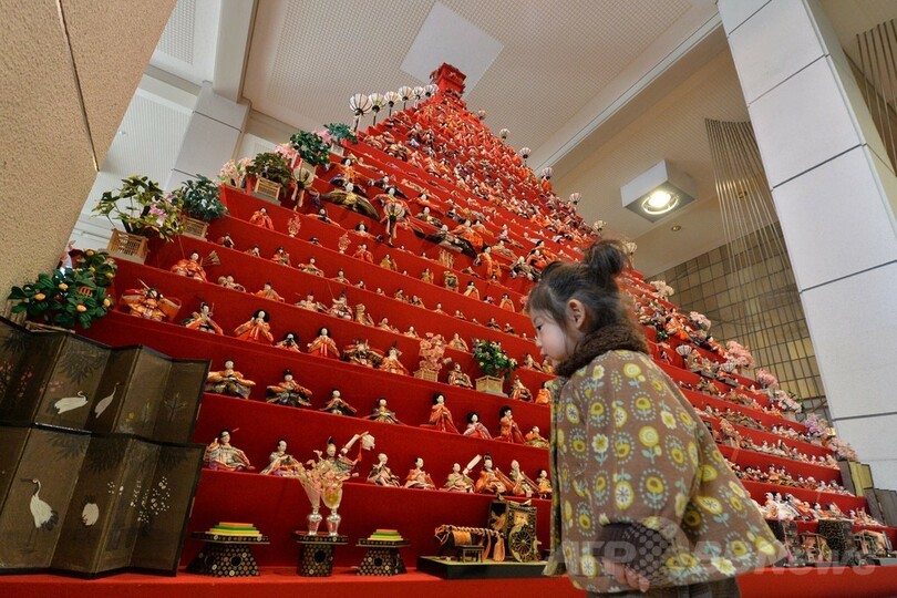 【2月20日 AFP】埼玉県鴻巣市の市役所で開催されているひな祭りイベント「鴻巣びっくりひな祭り2014」では、高さ7メートルの「ピラミッドひな壇」に合計1800体以上のひな人形が飾られている。開催は3月8日まで。(c)AFP