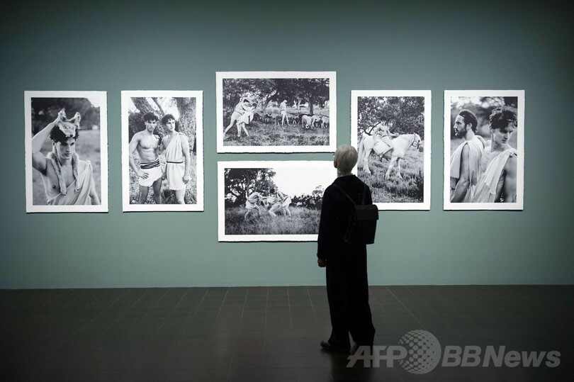この展覧会では、19世紀の画家のアンゼルム・フォイエルバッハ(Anselm Feuerbach)が描いたミューズの絵画と、デザイナーのカール・ラガーフェルド(Karl Lagerfeld)が撮影したモデルの写真を一堂に展示している。20日にはプレビューイベントが開催された。(c)AFP