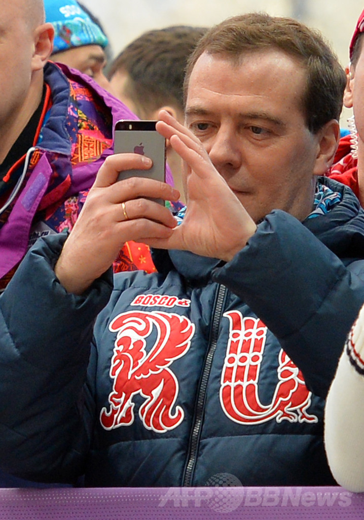 【2月24日 AFP】ロシアのドミトリー・メドベージェフ(Dmitry Medvedev)首相が23日、ソチ冬季五輪のボブスレー男子4人乗りの後半2回を観戦した。首相は、携帯電話で競技の様子を撮影するなど終始リラックスした様子で、最後には周囲のスタッフとロシアAの金メダルを喜んだ。(c)AFP