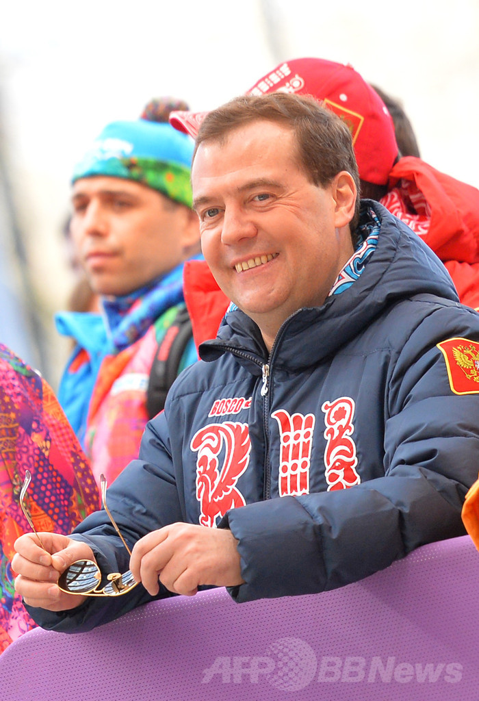 【2月24日 AFP】ロシアのドミトリー・メドベージェフ(Dmitry Medvedev)首相が23日、ソチ冬季五輪のボブスレー男子4人乗りの後半2回を観戦した。首相は、携帯電話で競技の様子を撮影するなど終始リラックスした様子で、最後には周囲のスタッフとロシアAの金メダルを喜んだ。(c)AFP