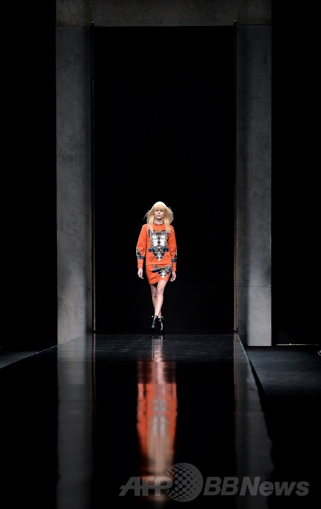 【2月24日 AFP】イタリア・ミラノ市内で19日から24日まで14/15年秋冬ミラノコレクションが開催されている。