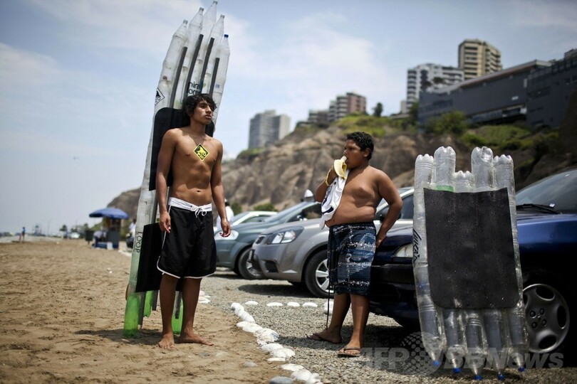 ニュース 環境・科学 こぼれ話 ペットボトルボードでエコサーフィン、南米ペルー 2014年2月28日 12:47 発信地:リマ/ペルー [ 中南米 ペルー ] このニュースをシェア ‹ › ❮ 10/10 ❯ 南米ペルー首都リマ(Lima)の海で、ペットボトルで作られたサーフボードの横に立つ少年たち(2014年2月27日撮影)。(c)AFP/ERNESTO BENAVIDES 画像作成中 ! 【2月28日 AFP】南米ペルーの首都リマ(Lima)の海で27日、ペットボトルで作られたサーフボードで波乗りをする少年たちの姿が見られた。これは環境問題への意識向上を促す「エコサーフ(ECOSURF)」プロジェクトの一環で、使い捨てのペットボトルでできたサーフボードを使ったサーフィンのレッスンなどが開催されている。(c)AFP 環境・科学 一覧へ> メディア・報道関係・法人の方向け 写真・動画 購入のお問合せ>