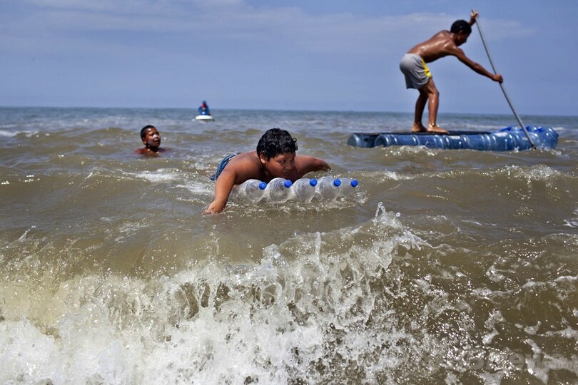 ニュース 環境・科学 こぼれ話 ペットボトルボードでエコサーフィン、南米ペルー 2014年2月28日 12:47 発信地:リマ/ペルー [ 中南米 ペルー ] このニュースをシェア ‹ › ❮ 6/10 ❯ 南米ペルー首都リマ(Lima)の海で、ペットボトルで作られたサーフボードで波乗りをする少年(2014年2月27日撮影)。(c)AFP/ERNESTO BENAVIDES 画像作成中 ! 【2月28日 AFP】南米ペルーの首都リマ(Lima)の海で27日、ペットボトルで作られたサーフボードで波乗りをする少年たちの姿が見られた。これは環境問題への意識向上を促す「エコサーフ(ECOSURF)」プロジェクトの一環で、使い捨てのペットボトルでできたサーフボードを使ったサーフィンのレッスンなどが開催されている。(c)AFP 環境・科学 一覧へ> メディア・報道関係・法人の方向け 写真・動画 購入のお問合せ>