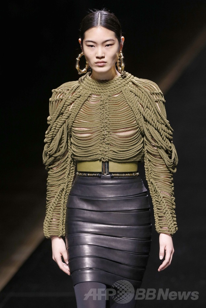 27日には「バルマン(Balmain)」が新作を発表し、ランウェイにはモデルのカーリー・クロス(Karlie Kloss)やジョアン・スモールズ(Joan Smalls)、ロージー・ハンティントン=ホワイトリー(Rosie Huntington-Whiteley)らが登場した。(c)AFP