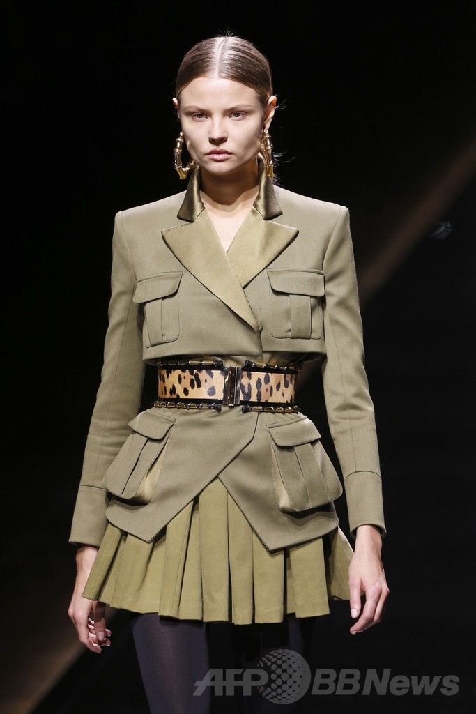 27日には「バルマン(Balmain)」が新作を発表し、ランウェイにはモデルのカーリー・クロス(Karlie Kloss)やジョアン・スモールズ(Joan Smalls)、ロージー・ハンティントン=ホワイトリー(Rosie Huntington-Whiteley)らが登場した。(c)AFP