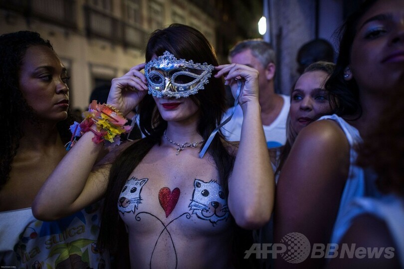 【2月28日 AFP】ブラジル・リオデジャネイロ(Rio de Janeiro)で27日、有名なリオのカーニバルの開幕を翌日に控え、ストリートパレードが開催された。ブラジル人映画監督のアナ・パウロ・ゴンカルベス(Ana Paulo Goncalves)さん率いるグループ「バンダ・ダ・ルア・ド・メルカード(Banda da Rua do Mercado)」のパレードでは、トップレスの女性たちが色とりどりのボディーペイントを施した姿で踊りを披露した。