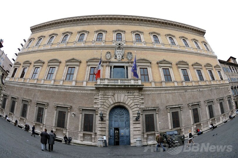 【2月28日 AFP】盛期ルネサンス(Hgh Renaissance)の最重要建築の一つ、イタリア・ローマ(Rome)のファルネーゼ宮(Farnese Palace)。その一室、天井装飾画のある「ガレリア・ファルネーゼ(Galleria Farnese)」が、3月から1年かけて修復される。ファルネーゼ宮は現在、フランス大使館として使われている。(c)AFP