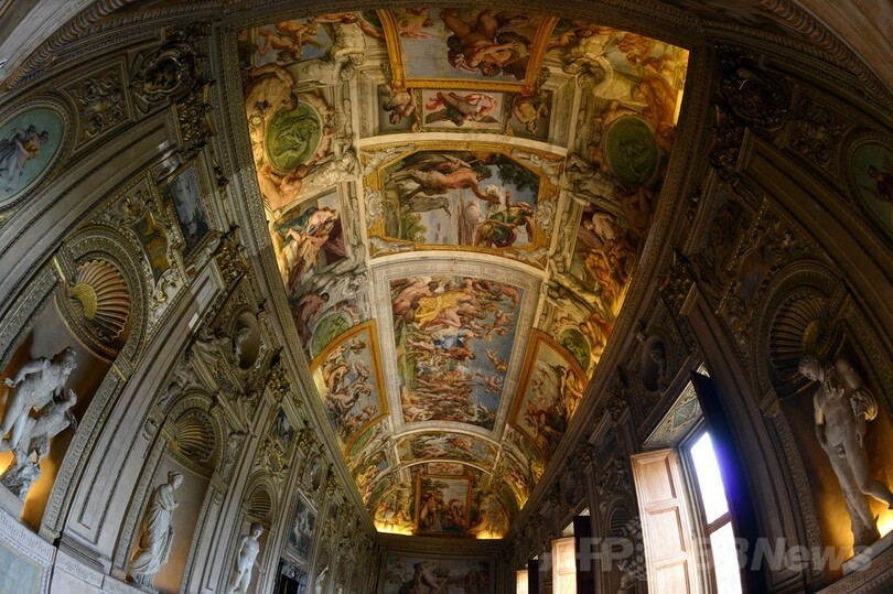【2月28日 AFP】盛期ルネサンス(Hgh Renaissance)の最重要建築の一つ、イタリア・ローマ(Rome)のファルネーゼ宮(Farnese Palace)。その一室、天井装飾画のある「ガレリア・ファルネーゼ(Galleria Farnese)」が、3月から1年かけて修復される。ファルネーゼ宮は現在、フランス大使館として使われている。(c)AFP
