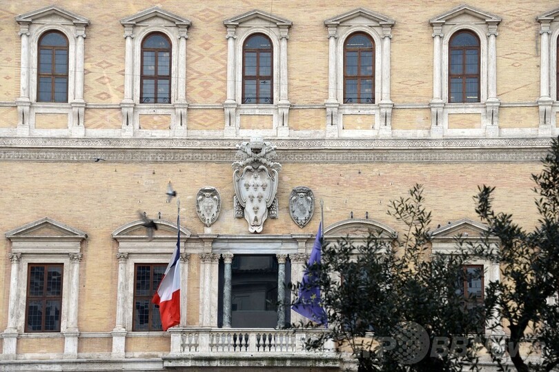 【2月28日 AFP】盛期ルネサンス(Hgh Renaissance)の最重要建築の一つ、イタリア・ローマ(Rome)のファルネーゼ宮(Farnese Palace)。その一室、天井装飾画のある「ガレリア・ファルネーゼ(Galleria Farnese)」が、3月から1年かけて修復される。ファルネーゼ宮は現在、フランス大使館として使われている。(c)AFP