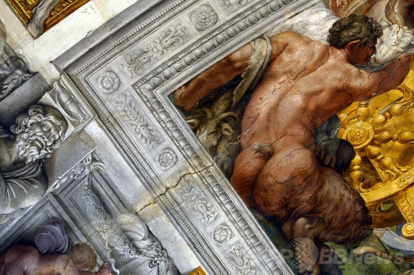 【2月28日 AFP】盛期ルネサンス(Hgh Renaissance)の最重要建築の一つ、イタリア・ローマ(Rome)のファルネーゼ宮(Farnese Palace)。その一室、天井装飾画のある「ガレリア・ファルネーゼ(Galleria Farnese)」が、3月から1年かけて修復される。ファルネーゼ宮は現在、フランス大使館として使われている。(c)AFP
