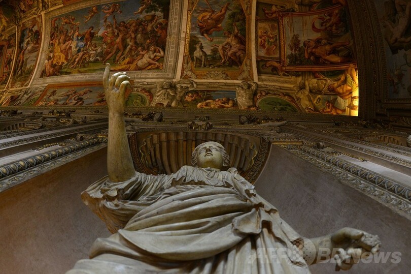 【2月28日 AFP】盛期ルネサンス(Hgh Renaissance)の最重要建築の一つ、イタリア・ローマ(Rome)のファルネーゼ宮(Farnese Palace)。その一室、天井装飾画のある「ガレリア・ファルネーゼ(Galleria Farnese)」が、3月から1年かけて修復される。ファルネーゼ宮は現在、フランス大使館として使われている。(c)AFP