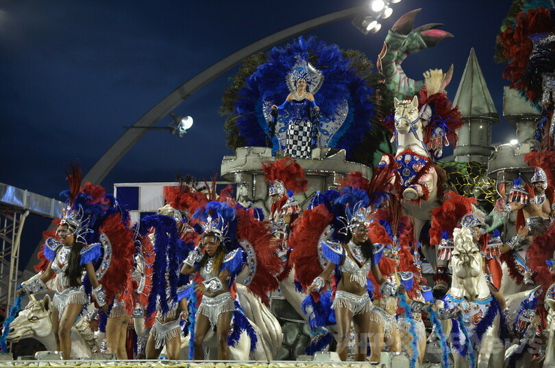 【3月3日 AFP】ブラジル・サンパウロ(Sao Paulo)で開催中のカーニバルは2日、前日に続き、各サンバチームのきらびやかな山車(だし)などが登場し、会場のサンボドロム(Sambadrome)は熱気につつまれた。(c)AFP
