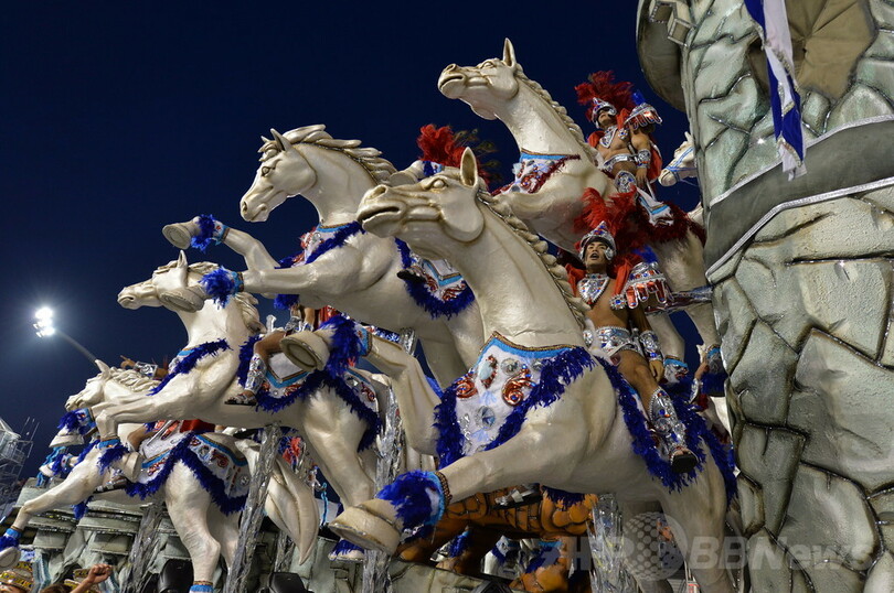 【3月3日 AFP】ブラジル・サンパウロ(Sao Paulo)で開催中のカーニバルは2日、前日に続き、各サンバチームのきらびやかな山車(だし)などが登場し、会場のサンボドロム(Sambadrome)は熱気につつまれた。(c)AFP
