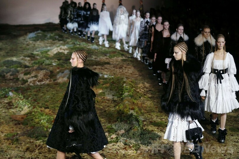 4日には、サラ・バートン(Sarah Burton)が手がける「アレキサンダー・マックイーン(Alexander McQueen)」が新作を発表した。(c)AFP