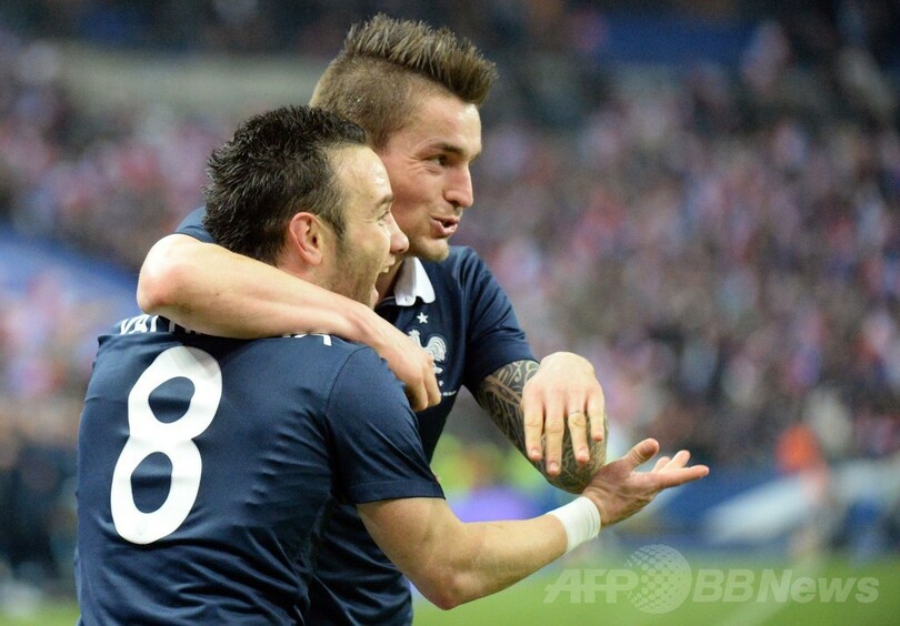 そしてハーフタイムを迎える3分前に記録されたフランスの追加点は、ベンゼマの右サイドに展開したパスから生まれ、ボールを受けたマチュー・ヴァルブエナ(Mathieu Valbuena)のクロスを、ゴール前に走り込んでいたマテュイディがアクロバティックな体勢から得点を挙げた。