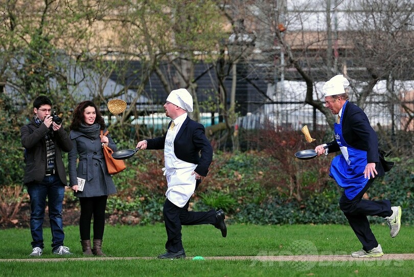 断食の伝統がある四旬節の初日となる「灰の水曜日(Ash Wednesday)」の前日の火曜日は、英国では「パンケーキ・デー」とも呼ばれており、各地でパンケーキレースが行われる。(c)AFP