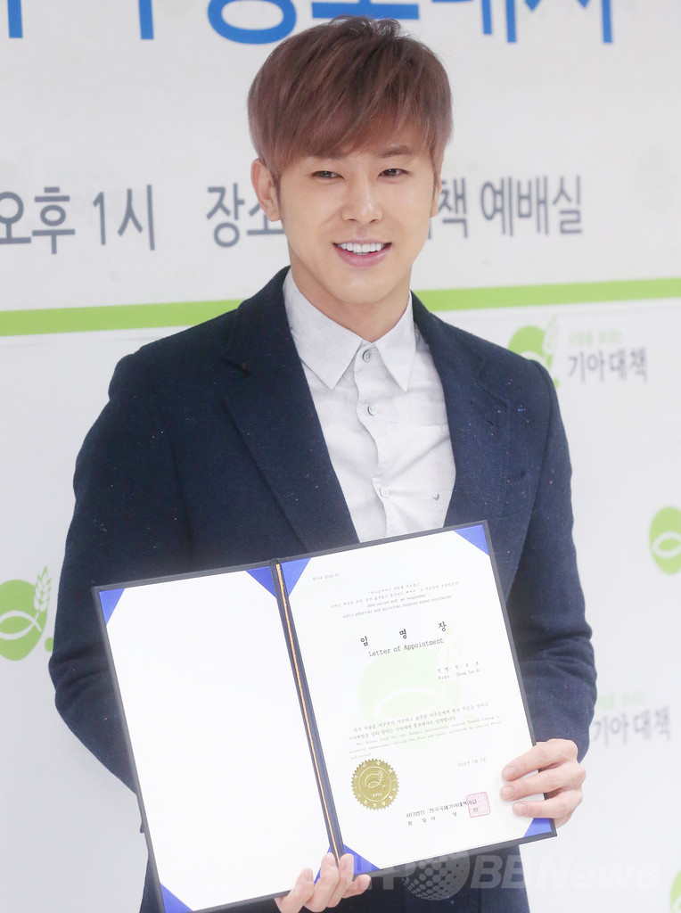 【3月6日 STARNEWS】韓国・ソウル(Seoul)の韓国国際飢餓対策機構(Korea Food for the Hungry International、KFHI)ソウル事務局で3日、KFHIの広報大使任命式が開催され、アイドルグループ「東方神起(TVXQ)」のユンホ(Yunho)が任命された。(c)STARNEWS