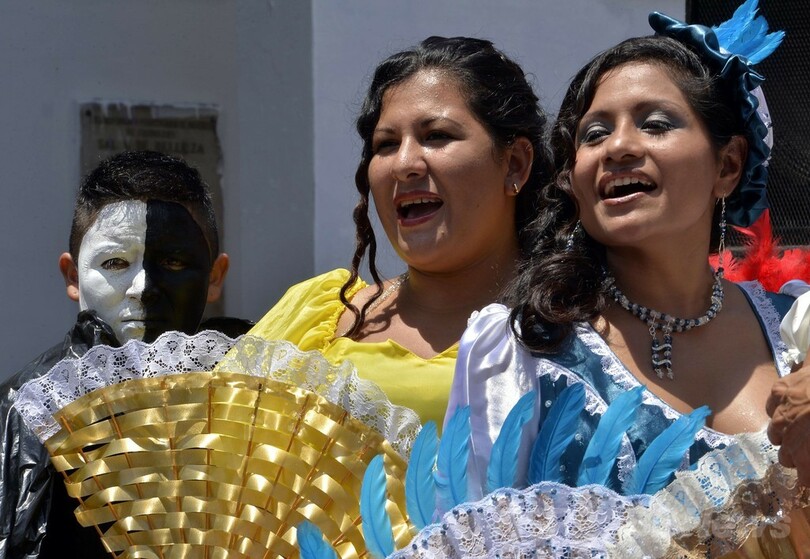 【3月8日 AFP】ペルーの首都リマ(Lima)にある刑務所で6日、女性受刑者たちがリサイクルした素材を使って制作したコロニアル風のドレスを身にまとい、「国際女性の日(International Women's Day)」を記念するミュージカルを上演した。(c)AFP