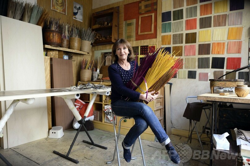 麦わら象眼細工は17世紀から続くフランス伝統の工芸技術だが、数十年前に廃れていた。その伝統をよみがえらせたドゥ・コーヌさんは、昔ながらの農法で栽培され、収穫されたライ麦のわらを使って、美しい作品の数々を生み出している。(c)AFP
