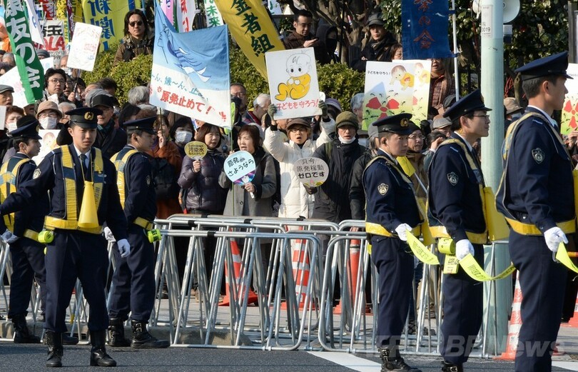 デモの参加者らは、原発業界および世界第3位の経済大国の電力をまかなうとの理由で原子炉の運転再開を求めている安倍晋三(Shinzo Abe)首相に対して怒りの声を上げた。