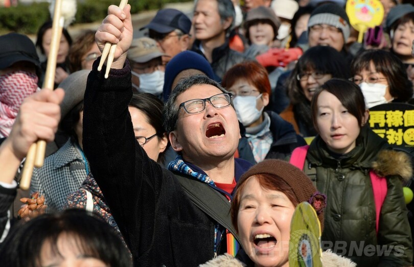 デモの参加者らは、原発業界および世界第3位の経済大国の電力をまかなうとの理由で原子炉の運転再開を求めている安倍晋三(Shinzo Abe)首相に対して怒りの声を上げた。
