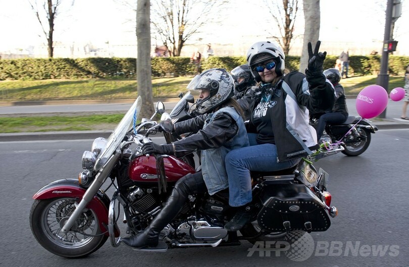 【3月10日 AFP】フランス各地で9日、「国際女性の日(International Women's Day)」を記念してオートバイに乗る女性たちのためのイベント「Toutes en Moto(皆でオートバイに乗ろう)」が開催され、首都パリ(Paris)ではエッフェル塔(Eiffel Tower)前に多数の女性二輪ライダーが集結した。(c)AFP
