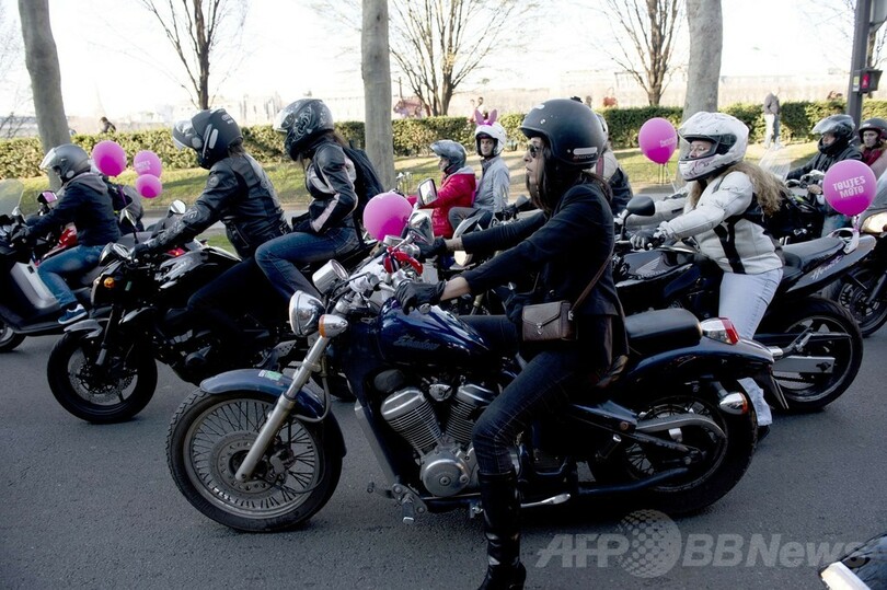 【3月10日 AFP】フランス各地で9日、「国際女性の日(International Women's Day)」を記念してオートバイに乗る女性たちのためのイベント「Toutes en Moto(皆でオートバイに乗ろう)」が開催され、首都パリ(Paris)ではエッフェル塔(Eiffel Tower)前に多数の女性二輪ライダーが集結した。(c)AFP