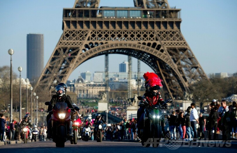 壮観華麗!女性ライダーがエッフェル塔前に大集合