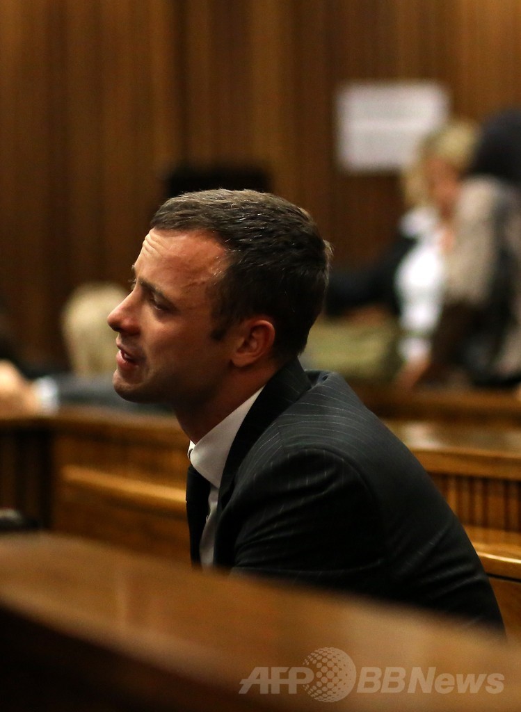 同被告はこの日の公判が終了しても、被告席に突っ伏したままで動かず、兄のカール(Carl Pistorius)さんと妹のエイミー(Aimee Pistorius)さんに慰められてようやく心を落ち着けた様子だった。約10分後、同被告はエイミーさんに腕を支えられて法廷を後にした。(c)AFP/Stephanie Findlay