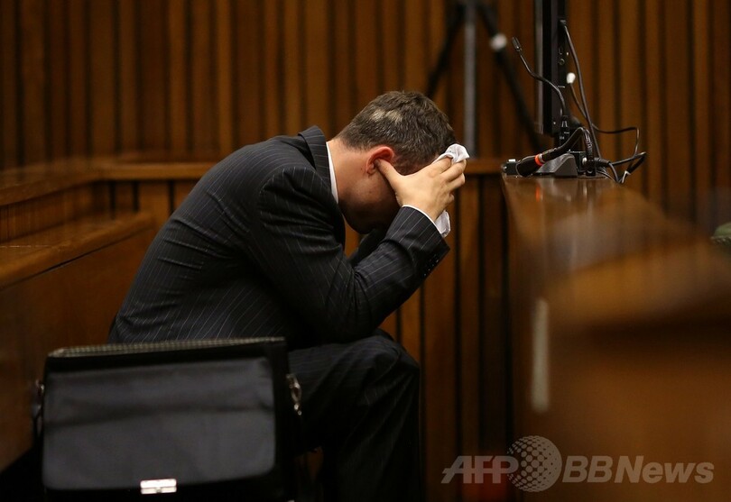 同被告はこの日の公判が終了しても、被告席に突っ伏したままで動かず、兄のカール(Carl Pistorius)さんと妹のエイミー(Aimee Pistorius)さんに慰められてようやく心を落ち着けた様子だった。約10分後、同被告はエイミーさんに腕を支えられて法廷を後にした。(c)AFP/Stephanie Findlay