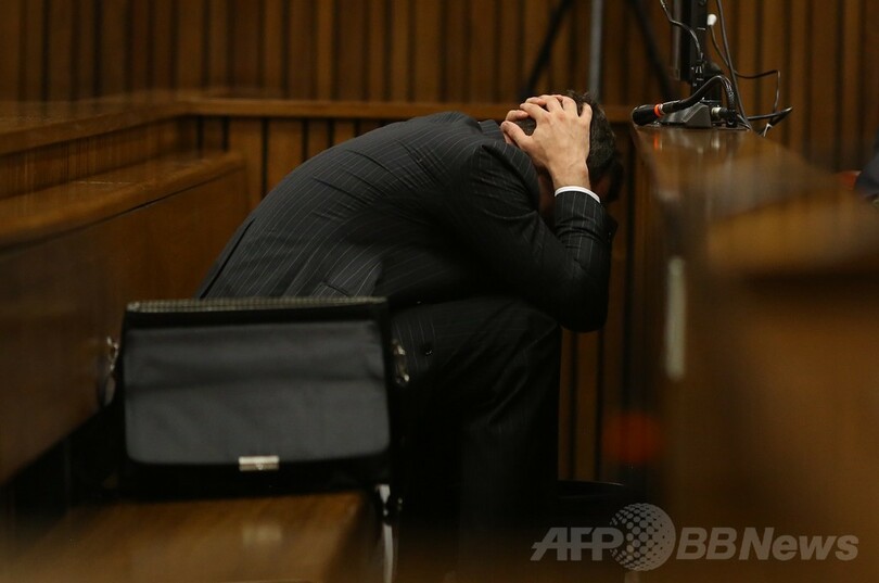 同被告はこの日の公判が終了しても、被告席に突っ伏したままで動かず、兄のカール(Carl Pistorius)さんと妹のエイミー(Aimee Pistorius)さんに慰められてようやく心を落ち着けた様子だった。約10分後、同被告はエイミーさんに腕を支えられて法廷を後にした。(c)AFP/Stephanie Findlay
