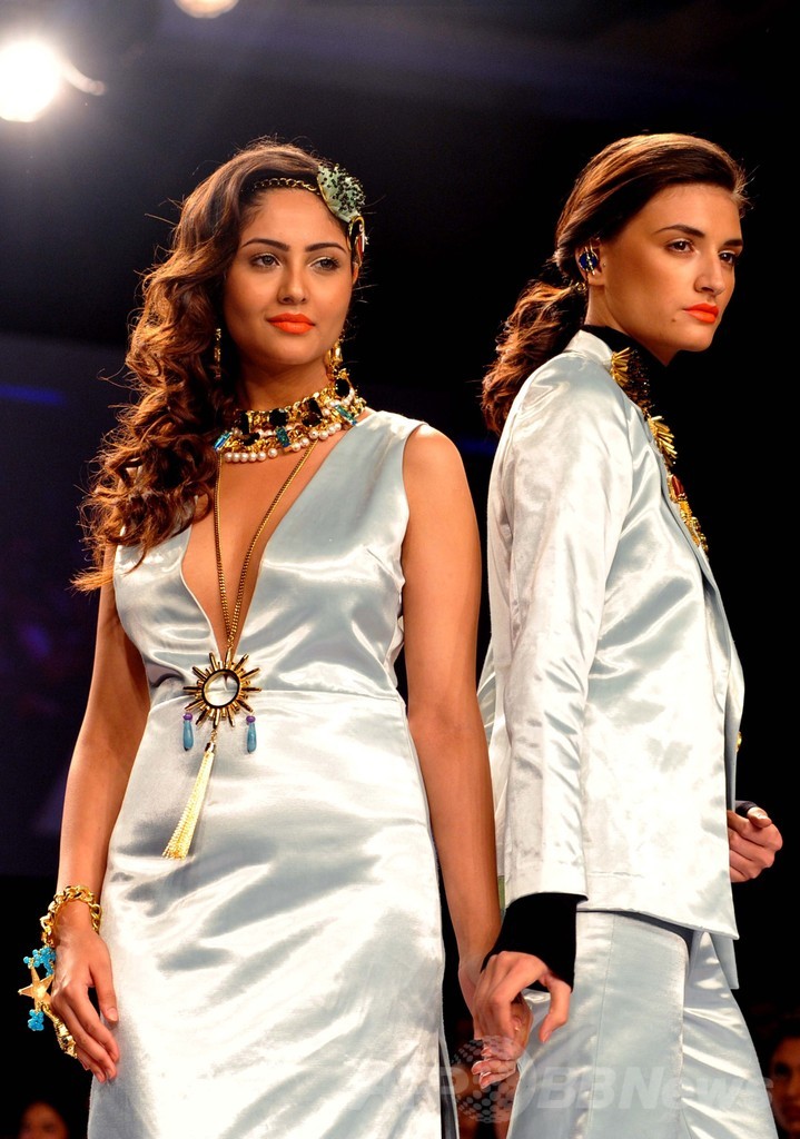 【3月13日 AFP】インド・ムンバイ(Mumbai)市内で12日から16日まで、14年サマーリゾート ラクメ・ファッション・ウィーク(Lakme Fashion Week)が開催されている。
