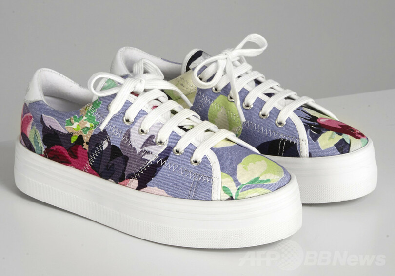 プラットフォームスニーカーで有名な「NO NAME」とコラボレーションした限定スニーカーは、2014年春夏ウィメンズコレクションで使用されたオリジナルのローズプリント柄で、カラーはコーンフラワーとベージュ系のサンドの2色展開。日本では4月から「カルヴェン」表参道店とeショップのみで展開する。価格は2万6000円(税別)。(c)MODE PRESS