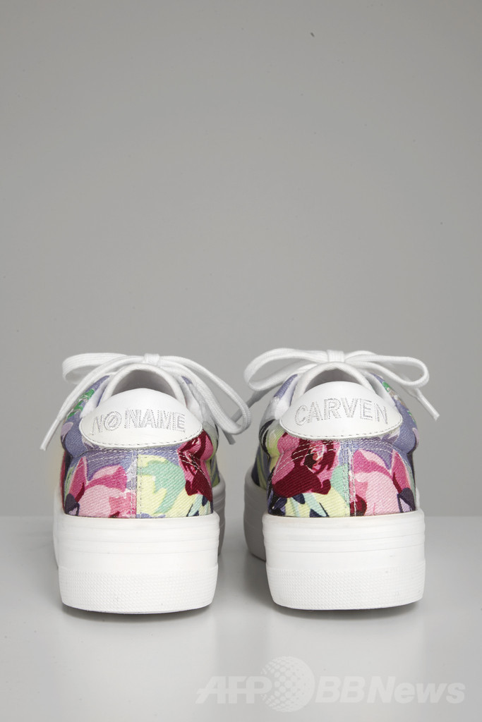 プラットフォームスニーカーで有名な「NO NAME」とコラボレーションした限定スニーカーは、2014年春夏ウィメンズコレクションで使用されたオリジナルのローズプリント柄で、カラーはコーンフラワーとベージュ系のサンドの2色展開。日本では4月から「カルヴェン」表参道店とeショップのみで展開する。価格は2万6000円(税別)。(c)MODE PRESS