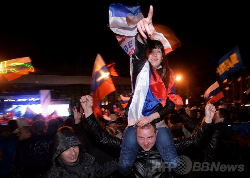 一方、ロシア政府との関係強化を拒否したウクライナ政府を罰し、ウクライナの国土を掌握するために住民投票を仕組んだと非難されているロシアのウラジーミル・プーチン(Vladimir Putin)大統領は、米国のバラク・オバマ(Barack Obama)大統領との電話会談で、住民投票は「国際法の基準に完全に沿っている」と伝え、自身の揺るがない立場を表明した。