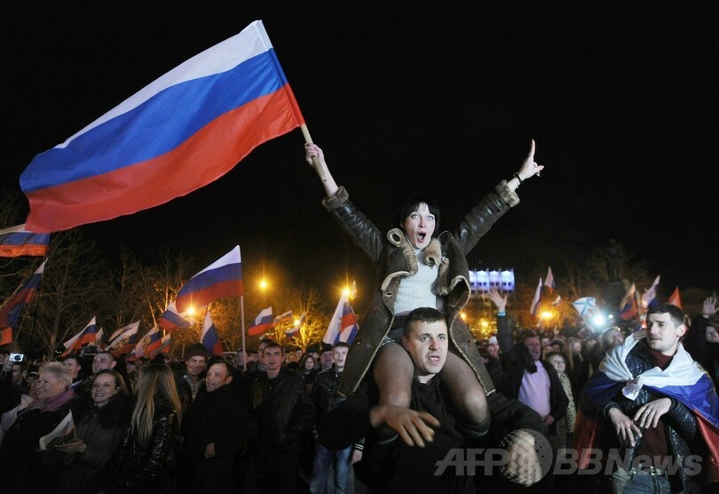 一方、ロシア政府との関係強化を拒否したウクライナ政府を罰し、ウクライナの国土を掌握するために住民投票を仕組んだと非難されているロシアのウラジーミル・プーチン(Vladimir Putin)大統領は、米国のバラク・オバマ(Barack Obama)大統領との電話会談で、住民投票は「国際法の基準に完全に沿っている」と伝え、自身の揺るがない立場を表明した。
