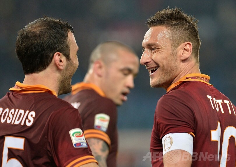 ローマはけがから1か月ぶりに復帰した主将のフランチェスコ・トッティ(Francesco Totti)が得点を記録し、首位ユベントス(Juventus)との勝ち点差を14に戻した。