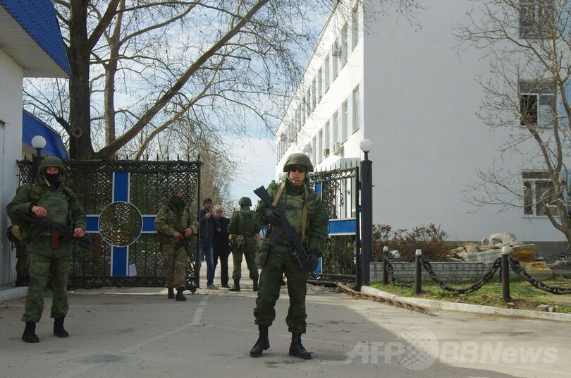 またクリミア西部Novoozerneにあるウクライナ海軍の基地にも、親ロシア派の集団がトラクターを使ってゲートを突破し、入り口を制圧しているとウクライナ国防省のウラジスラブ・セレズネフ(Vladislav Seleznev)報道官は述べている。同報道官が交流サイト(SNS)のフェイスブック(Facebook)に記したところによると、集団が進入したところで「ロシア軍の兵士たち」が停止させ、現在は武装したウクライナ軍部隊とにらみ合っている状況だという。(c)AFP