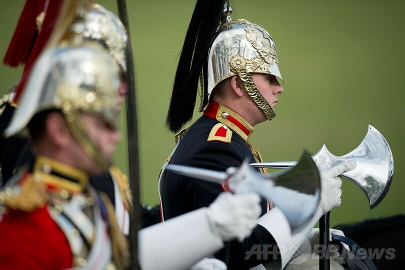 【3月21日 AFP】英ロンドン(London)のハイド・パーク(Hyde Park)で20日、近衛騎兵隊騎馬連隊(Household Cavalry Mounted Regiment)の閲兵式が行われた。毎年恒例のこの閲兵式では、騎兵隊が国家的な式典での任務遂行に必要な技術水準に達しているかを英陸軍の少将が閲兵し、確認する。(c)AFP