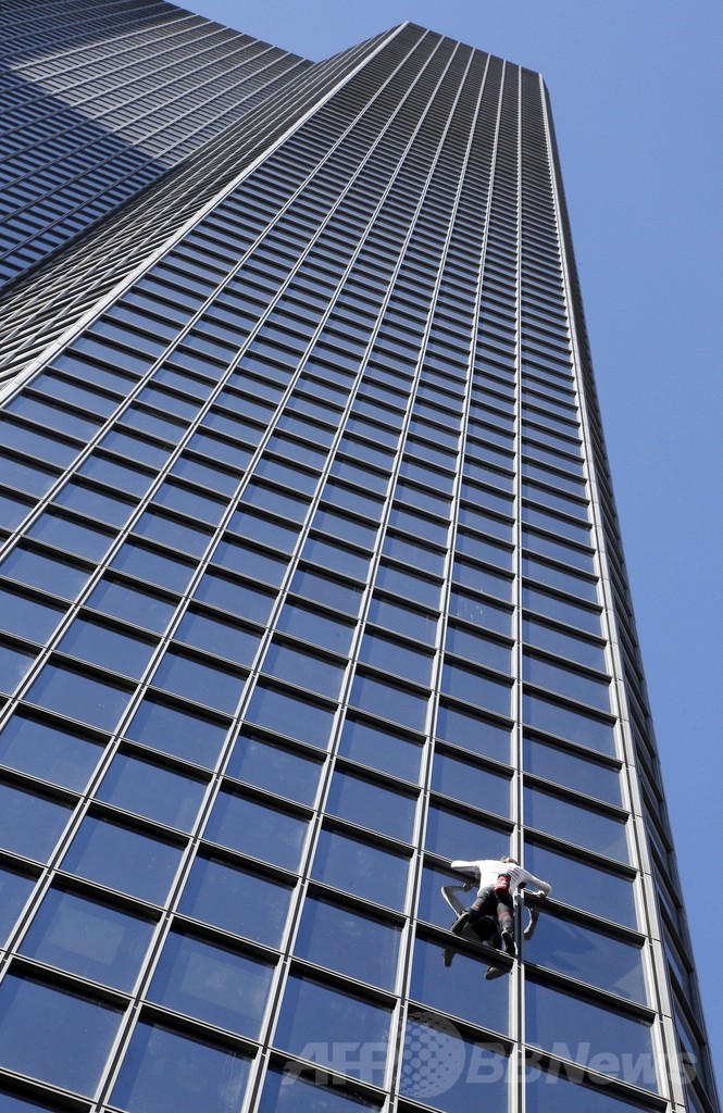仏スパイダーマン、186メートル高層ビル「登頂」成功