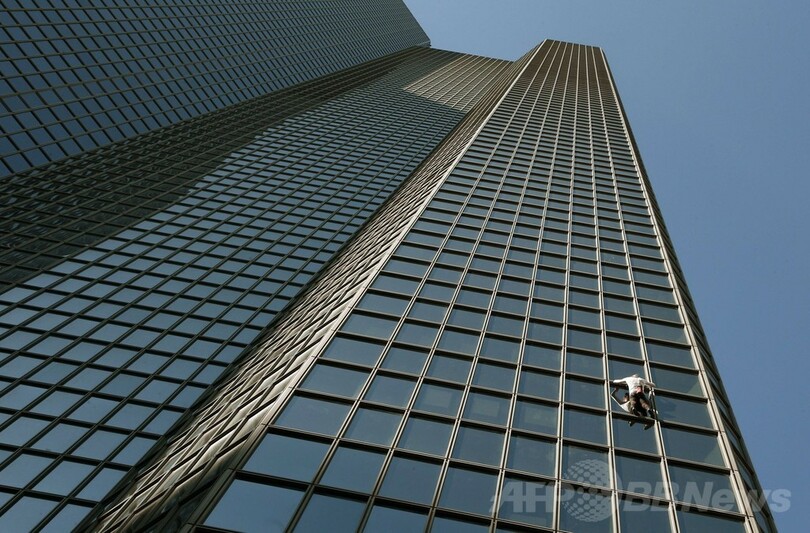 仏スパイダーマン、186メートル高層ビル「登頂」成功