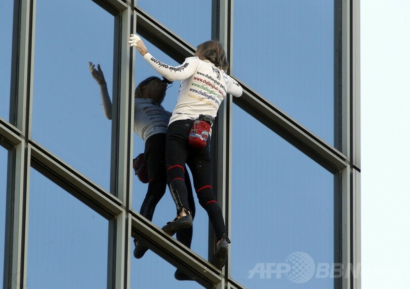 仏スパイダーマン、186メートル高層ビル「登頂」成功