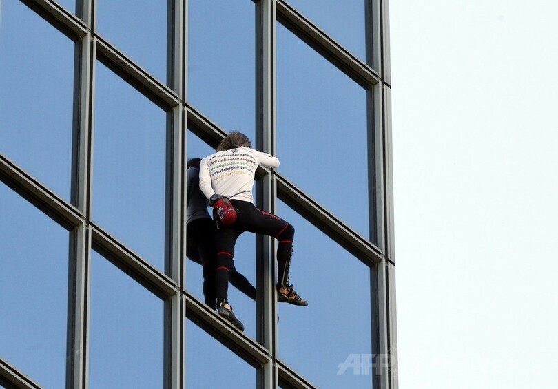 仏スパイダーマン、186メートル高層ビル「登頂」成功