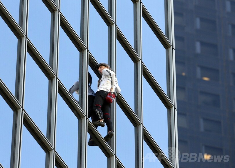 仏スパイダーマン、186メートル高層ビル「登頂」成功
