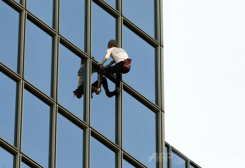 仏スパイダーマン、186メートル高層ビル「登頂」成功