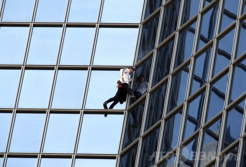 仏スパイダーマン、186メートル高層ビル「登頂」成功
